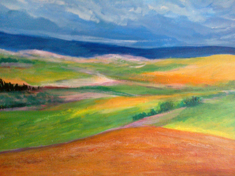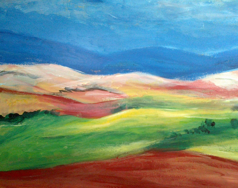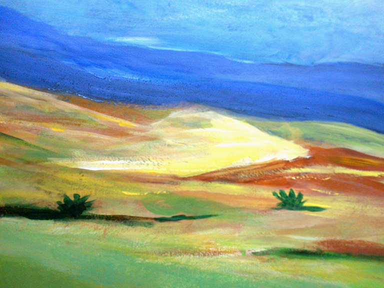 Es un recorrido pictórico, emocional, en el cuál la artista absorbe la belleza de la naturaleza de esta tierra y la plasma en sus obras que contemplan además las cuatro estaciones del año. Desde los Pirineos a los Montes Universales y desde los Monegros al Moncayo, sus pinceles colorean toda la diversidad de estos paisajes impregnándolos de luz y armoniosa fuerza.