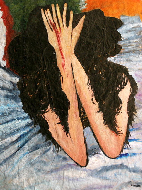 Algunos de estos rostros de mujer tratan de expresar la decepción, la soledad, el miedo y el dolor más profundo. Comprometida, con la causa de la violencia de género participó, junto con otras artistas de la asociación «Artemisia y compañía», en un alegato de esta terrible situación y así lo manifestaron con sus obras en varias exposiciones con intención de llegar a mover la sensibilidad para que nadie caiga en la indiferencia.