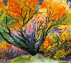 “Carmen Catalán enciende el fuego húmedo de su pintura cuando aplica los colores en el soporte. Encienden el milagro de las apariciones. Pintura, semilla, poema. Carmen Catalán hace alumbrar a la madre tierra y a su atmósfera con la afirmación de que la vida vence a la Nada”.